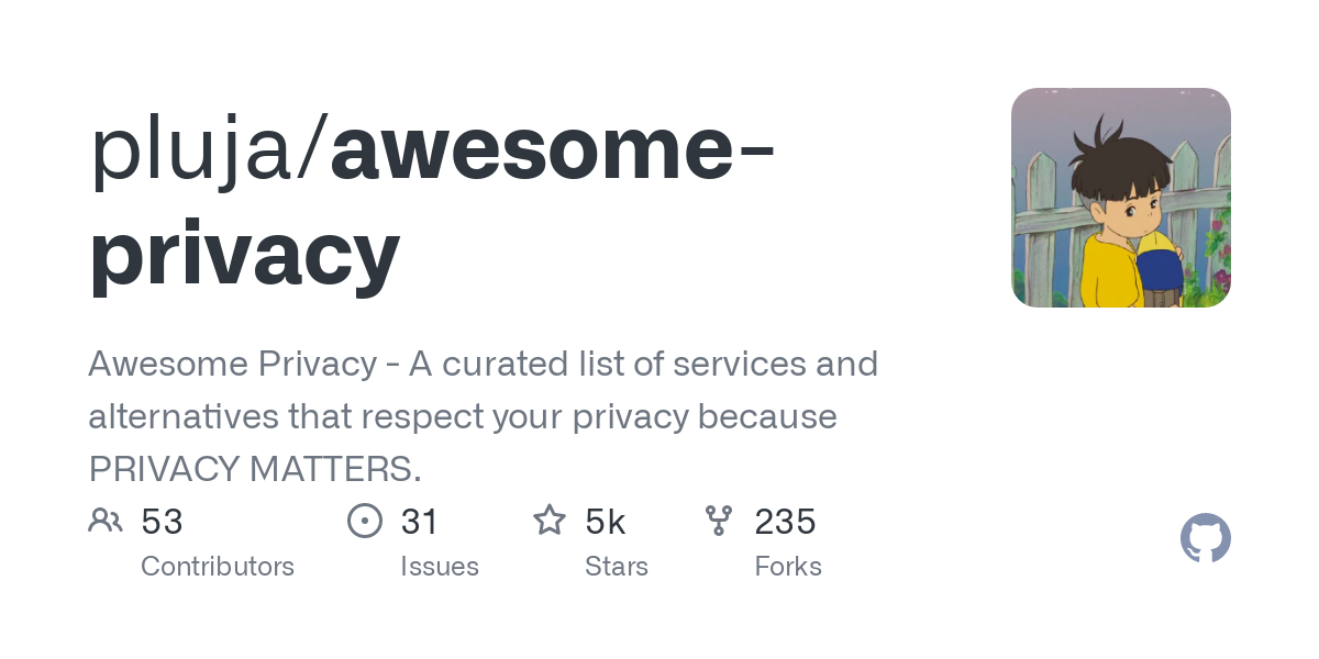 Awesome Privacy - A curated list of services and alternatives that respect your privacy because PRIVACY MATTERS. - GitHub - pluja/awesome-privacy: Awesome Privacy - A curated list of services and a...
